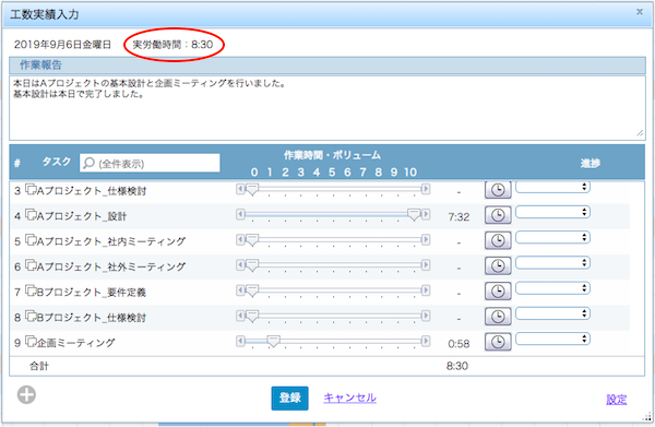 - 勤務時間と整合のとれた工数を簡単・正確に管理できるようになった