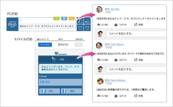 小出氏も、「現状、リモートワークを実施する際はチャットで始業を知らせると同時にその日のTO DOを共有し、勤務時間内も細かくコミュニケーションを取って、終業時にその日の業務内容を伝えて退勤をメンバー全員に知らせる、という方法で、できる限りスタッフの動きを把握するように努めています。また、チャットツールのタイムスタンプと『TeamSpirit』の打刻データを突き合わせて、差異がないか注意し、『隠れ長時間労働』を見つけて対処することも考えているところです。こうした努力も合わせて、リモートワークをしたとしてもきちんと勤怠管理ができている状態を保っていきたいと考えています」と、対策について聞かせてくれた。