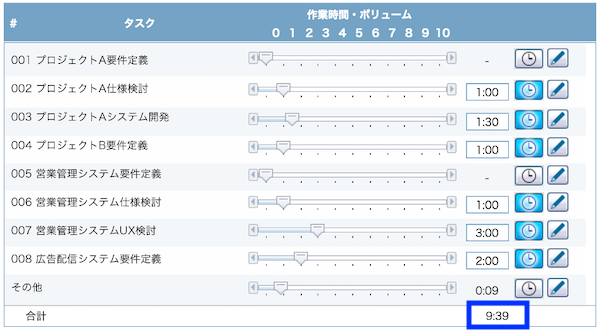 「TeamSpiritを導入してから、社員の業務量が目に見えて減りました」と喜古氏は語る。以前は出社・退社の時間を毎日どこかにメモし、月末にまとめてエクセルに転記する社員が多かったという。今では毎日PCやスマートフォンで打刻をし、月末に申請ボタンを押すだけで、勤務表が作成できてしまう。また、工数も同じTeamSpirit内で簡単に入力できるため、心理的負担も軽減されているという。旧システムでは時間単位で登録していた工数も、TeamSpiritでは勤務時間の何割をどの仕事に費やしたかという割合をスライダーで入れるだけだ。
