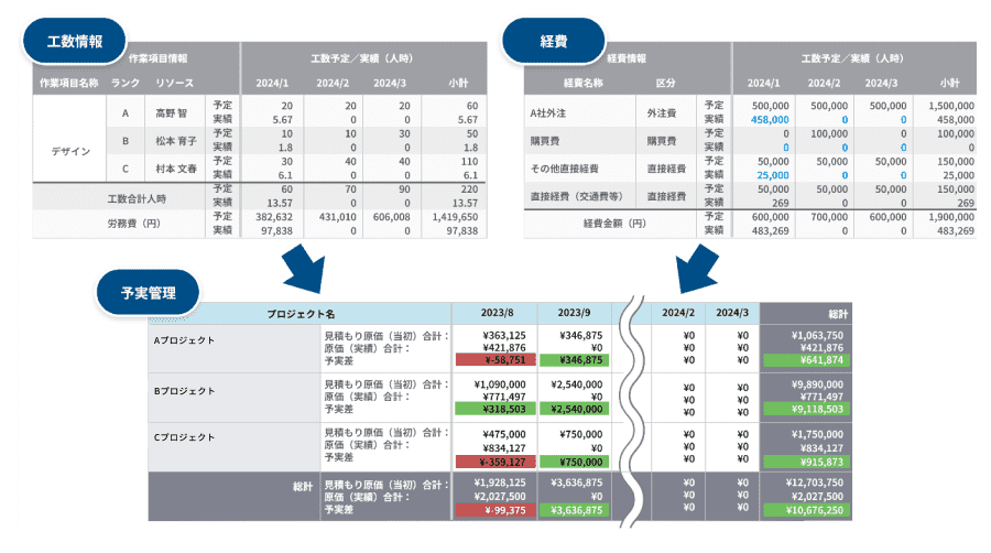 ここからは、各製品についてプロジェクト収支管理に役立つポイントをまとめて解説していきます。