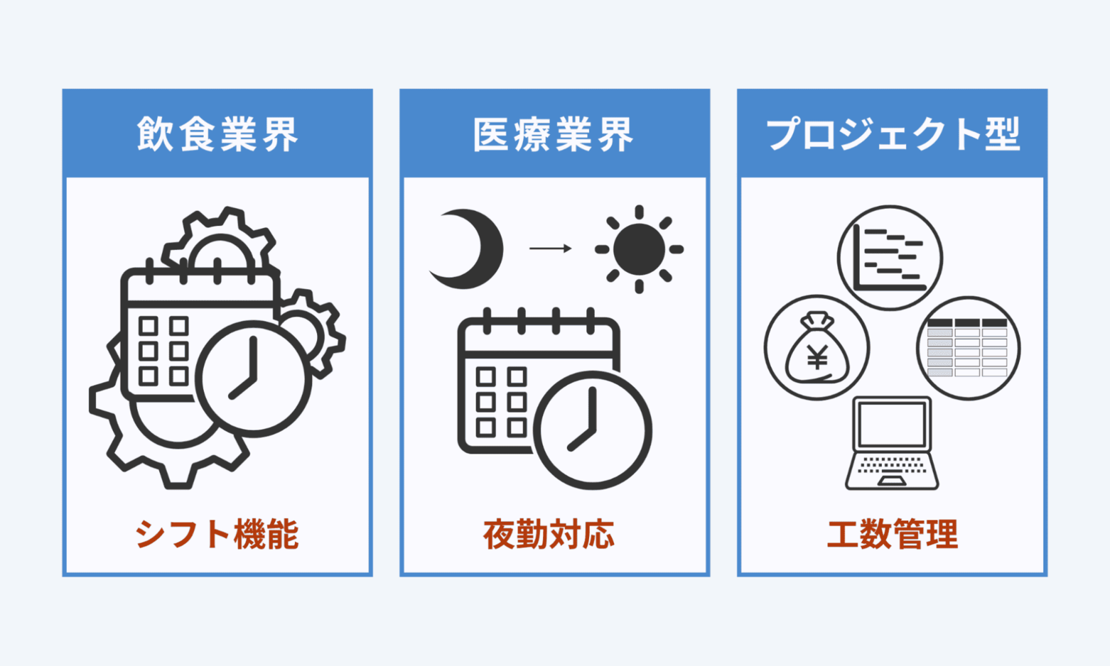 特定の業種の場合や、勤怠を管理する上でこだわりのポイントがある場合には、汎用的な勤怠管理システムではなく、その業種や特性に強い勤怠管理システムを選ぶのがおすすめです。