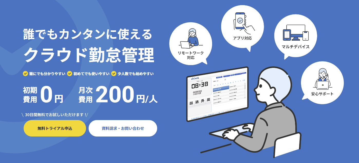 勤怠管理システムを初めて導入する企業や、リプレイスを前提としつつも試験的に導入したい企業に合うシステムは、以下のような勤怠管理システムがおすすめです。