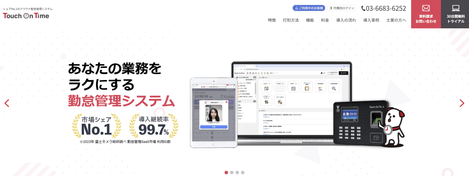Touch On Timeは、初期費用やサポート費用が無料です。必要費用は、利用人数分の月額料金だけとなっています。予算をなるべく抑えたい企業にとって、とても魅力的なシステムといえるでしょう。