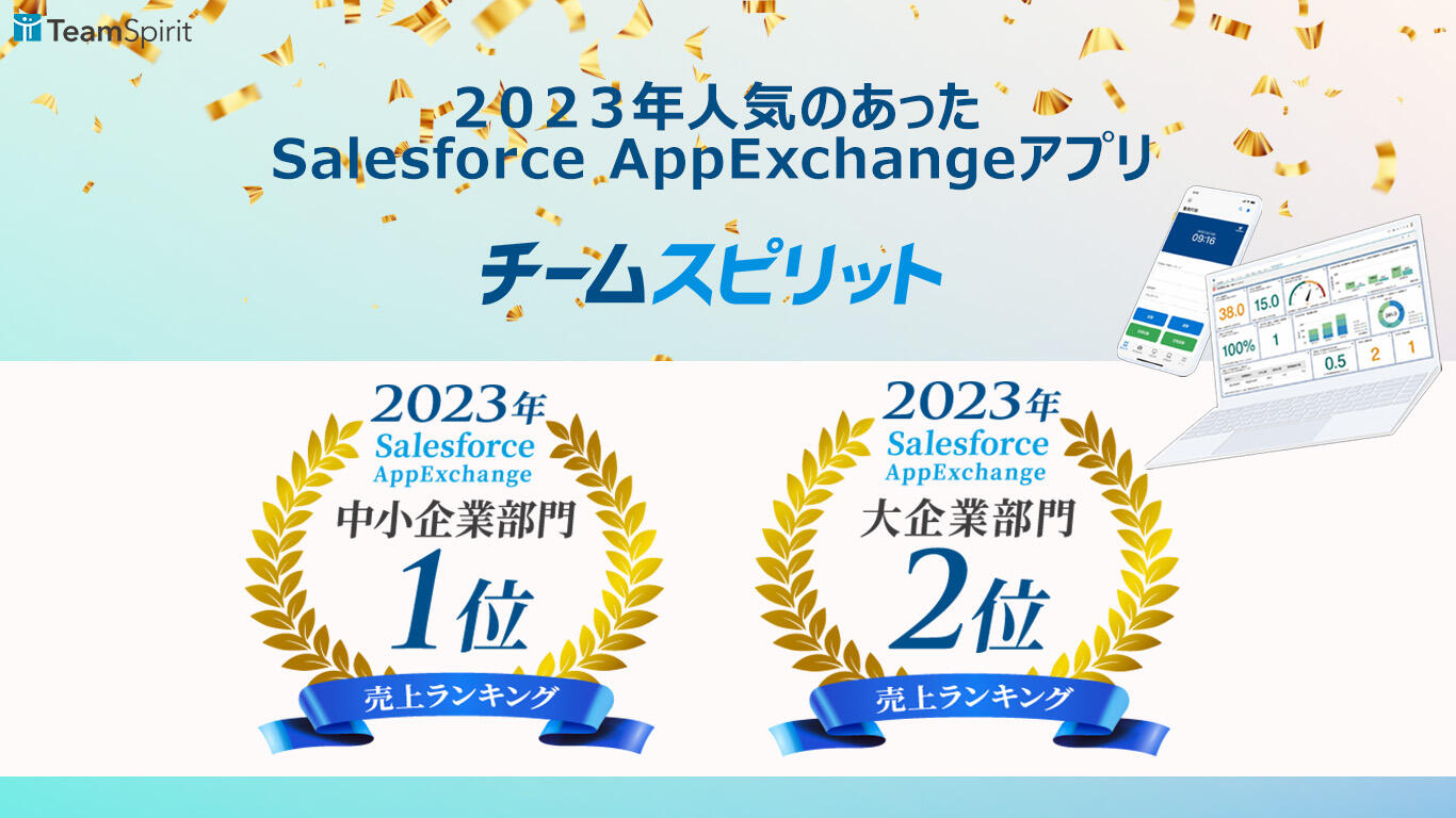 お知らせ2023年人気のあったSalesforce AppExchangeアプリランキングで「チームスピリット」が中小企業部門で第1位、大企業部門で2位 - 全部門でトップ5入賞 -