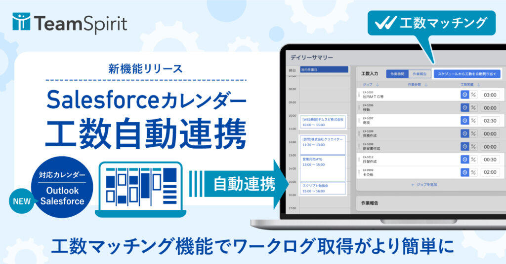 プロダクト情報チームスピリット、「Salesforce Sales Cloud カレンダー」と工数機能の自動連携を開始