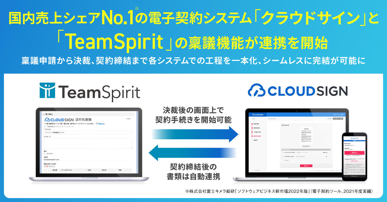 プロダクト情報「TeamSpirit」、国内売上シェアNo.1の電子契約システム 「クラウドサイン」と稟議機能連携を開始