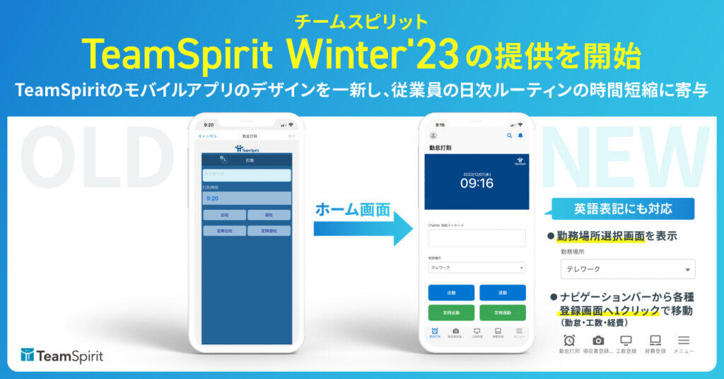 プロダクト情報チームスピリット、「TeamSpirit Winter'23」の提供を開始 〜TeamSpiritのモバイルアプリのデザインを一新し、従業員の日次ルーティンの時間短縮に寄与〜