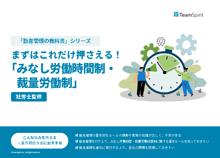 みなし労働時間・裁量労働時間制に関する基礎知識をまとめた資料です。運用上の注意や計算方法についても解説しております。詳しくはこちら -