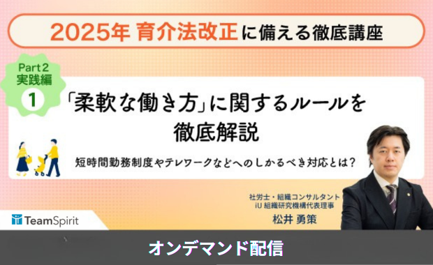 オンデマンド配信中【見逃し配信】2025年 育介法改正に備える徹底講座 ~Part2 実践編①~ 「柔軟な働き方」に関するルールを徹底解説