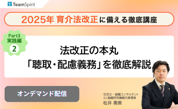 オンデマンド配信中【見逃し配信】2025年 育介法改正に備える徹底講座 ~Part3 実践編②~ 法改正の本丸「聴取・配慮義務」を徹底解説