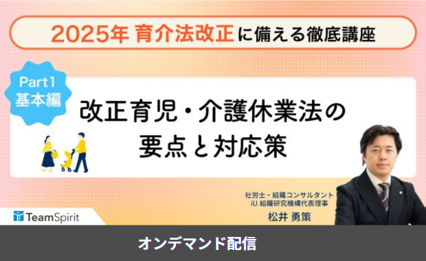 オンデマンド配信中【見逃し配信】2025年 育介法改正に備える徹底講座 ~Part1 基本編~ 改正育児・介護休業法の要点と対応策