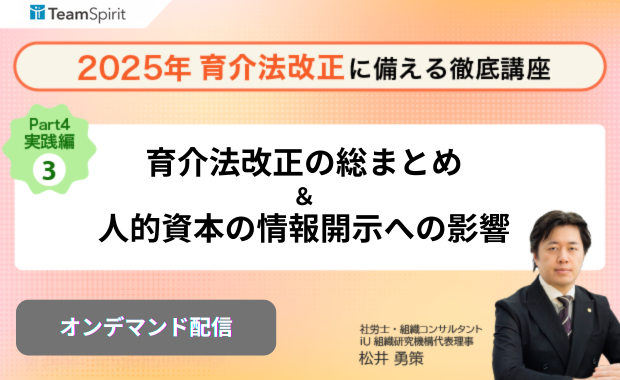 オンデマンド配信中【見逃し配信】2025年 育介法改正に備える徹底講座 ~Part4 実践編③~ 育介法改正の総まとめ&人的資本の情報開示への影響