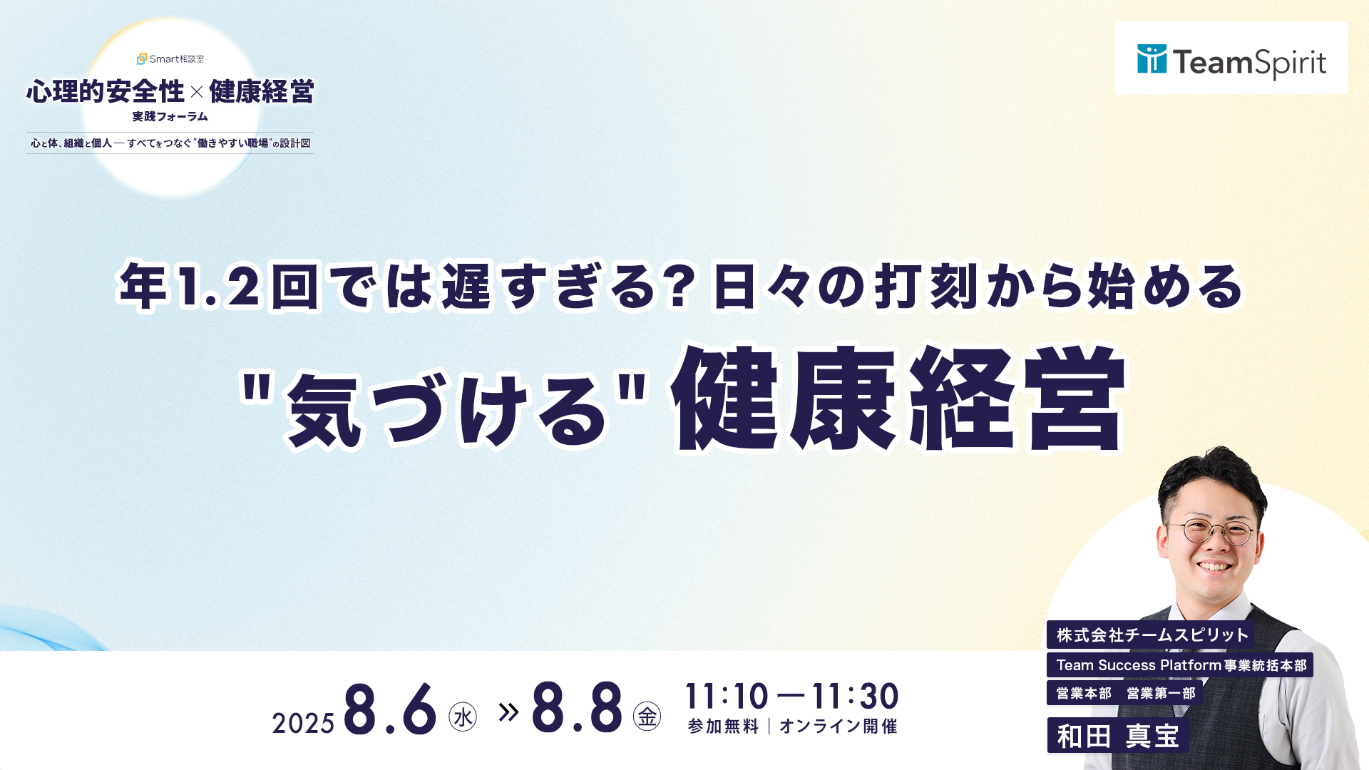 終了しました【イベント登壇】心理的安全性 × 健康経営 実践フォーラム 「年1,2回では遅すぎる?日々の打刻からはじめる"気づける"健康経営」