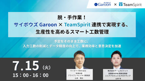 終了しました脱・手作業!サイボウズ Garoon × TeamSpirit連携で実現する、生産性を高めるスマート工数管理