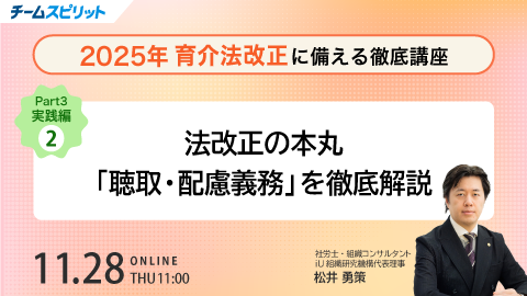 終了しました2025年 育介法改正に備える徹底講座 ~Part3 実践編②~ 法改正の本丸「聴取・配慮義務」を徹底解説