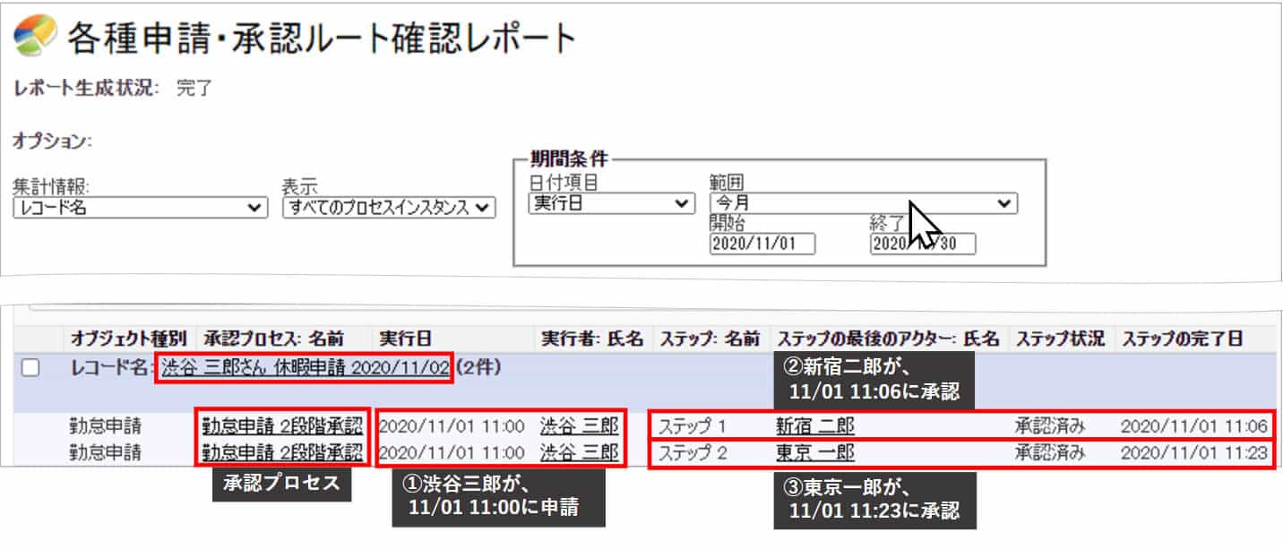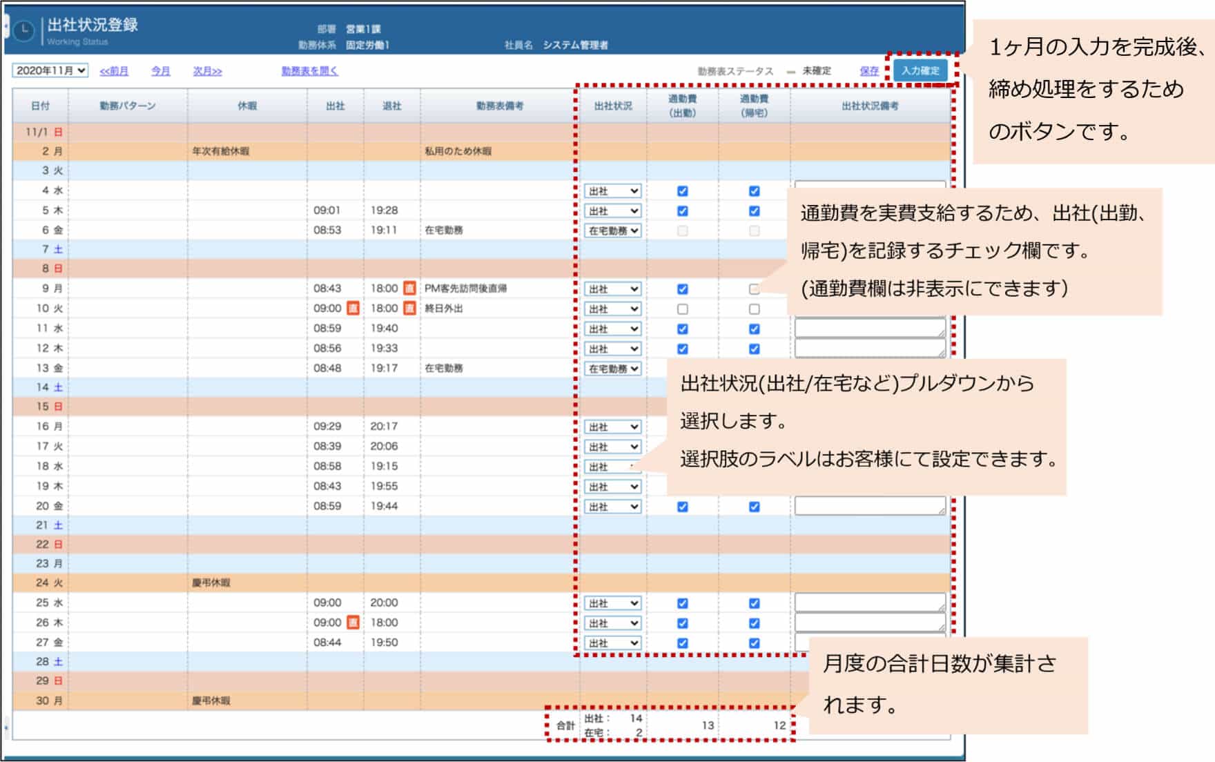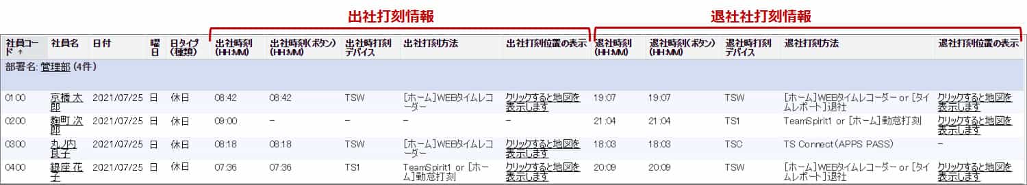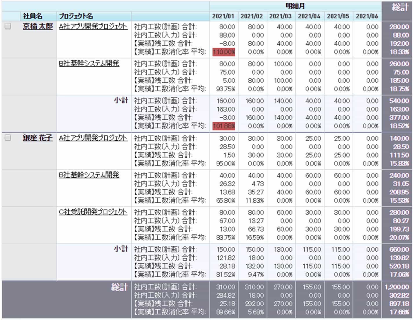 スタッフ別の残業状況把握や出勤場所の一覧化など、マネジメントに役立つレポートが充実。またスタッフへの自覚を促すレポートは、マネジメント工数の圧縮にもつながります。