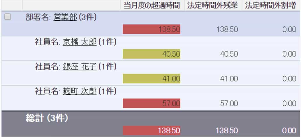 残業状況、経費精算状況など、リアルタイムで知りたい重要項目が一覧把握できます。データをもとに早期に対策できるため、組織の健全経営に役立ちます。